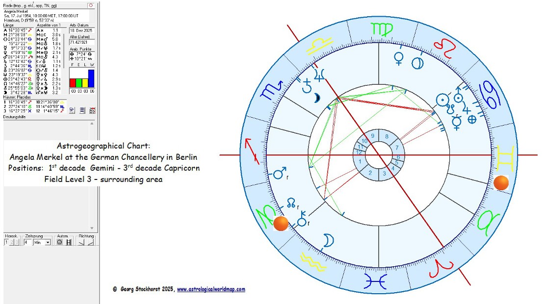 Astrogeographical Chart for Angela Merkel at the German Chancellery. An astrogeographical analysis of her standing as the head of government