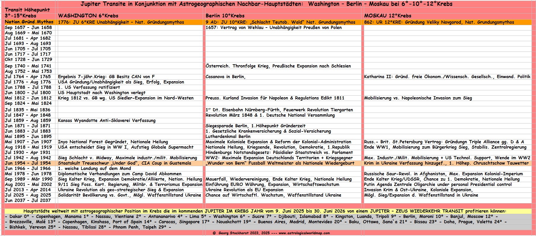 - In Merkels Horoskop standen 4 Faktoren in Konjunktion zu Berlin: der Glückspunkt bei 6°Krebs (Konjunktion Washington), Merkur bei 9° Krebs (Konjunktion Berlin), Jupiter bei 12°Krebs (Konjunktion Berlin & Moskau), der südliche Mondknoten bei 15°Krebs.