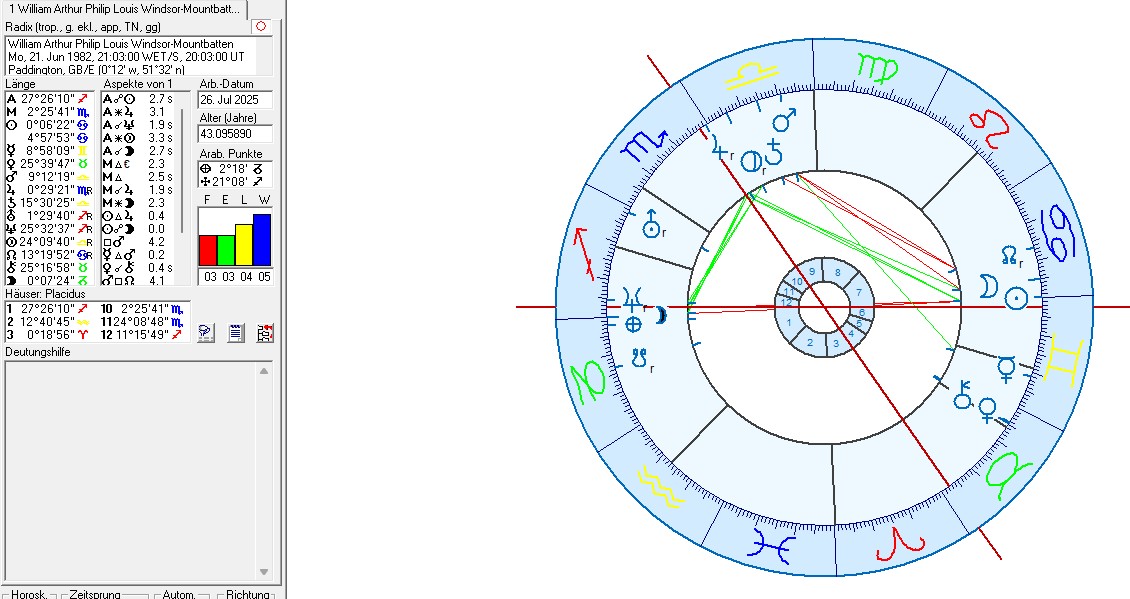 - The last degrees of Cancer scorrespond with the seventh house in Williams birth chart and may stimulate his openness to the motivation of doing the service as a king and to fullfill the demands of his job as the ruler at Buckingham Palace.