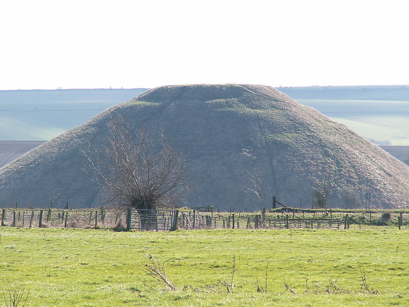 The West Kennet Long Barrow is a 110 m long, 33 m wide Neolithic tomb or barrow, situated on a prominent chalk ridge appr. 900 m south-east of Silbury Hill. The structure is alligned exactly to the needles of the compass in West-Eastern direction – with its entrance exactly towards sunrise. The construction of the grave was begun about 3600 BC which is some 600 years before the construction of the Avebury and Stonehenge circles.
