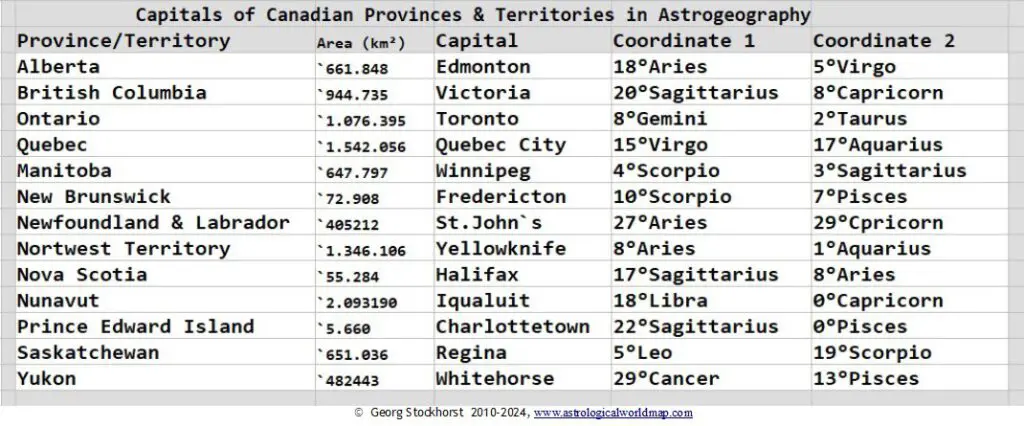 According to my experience the astrogeographical resonance positions of capitals from my calculation formula reflect the function of the places where they are located as all-time capital-centers of the respective nations. That means they are effctive as capital centers for the respective territories long before the foundation of a city or nation.
