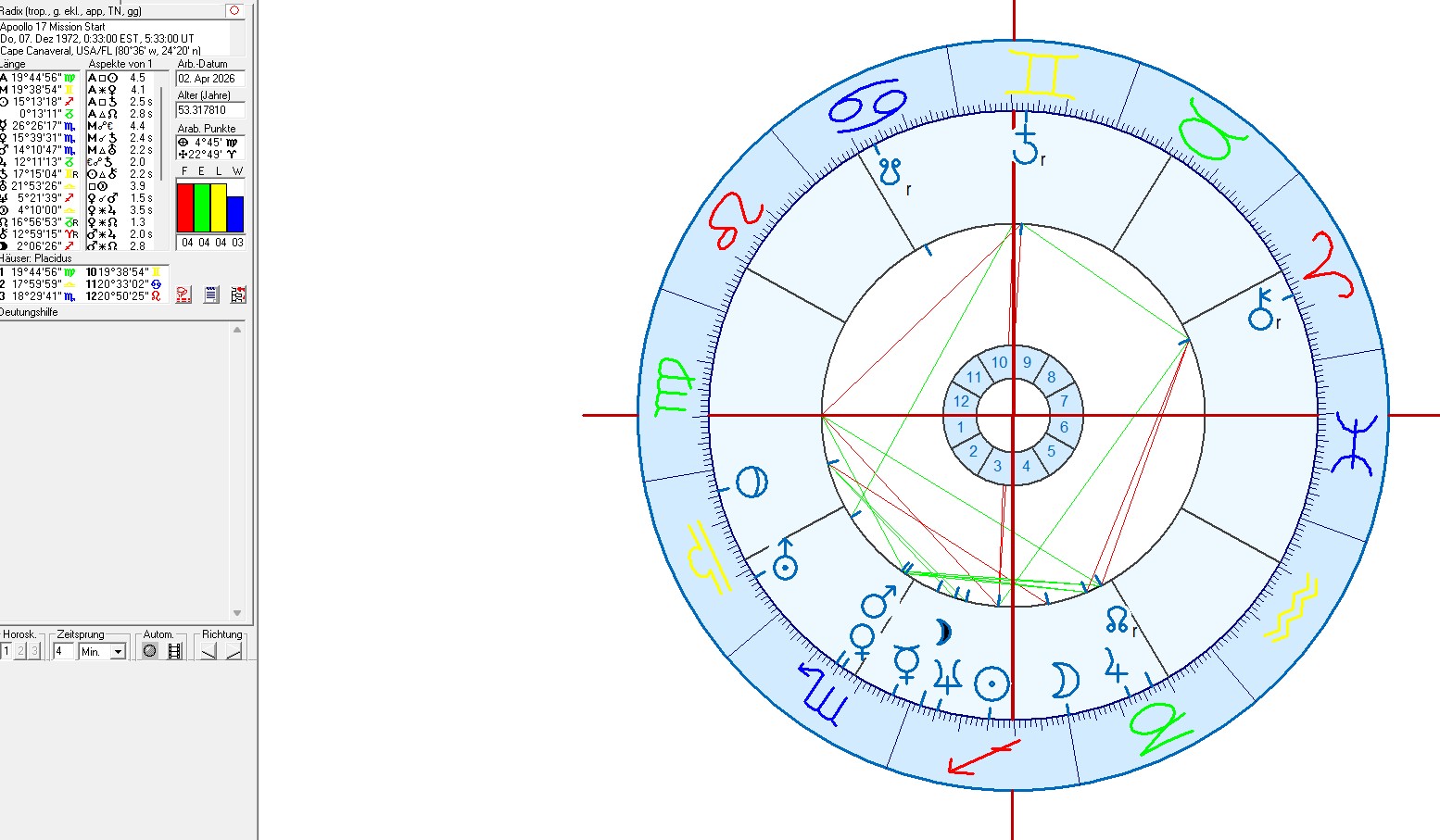 For comparison: The horoscope for the launch of the Apollo 17 mission on December 7, 1972